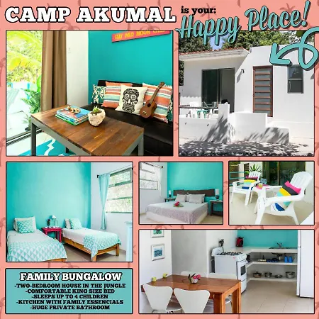 L'hotel Camp Akumal - Hosted Family Bungalows est situé résidentielle d'Akumal, à 4 km de la Playa Kantenah - très pratique si vous souhaitez vous immerger dans la nature. Outre une piscine à débordement, cet hotel 4 étoiles dispose d'un jardin avec des installations pour barbecue.